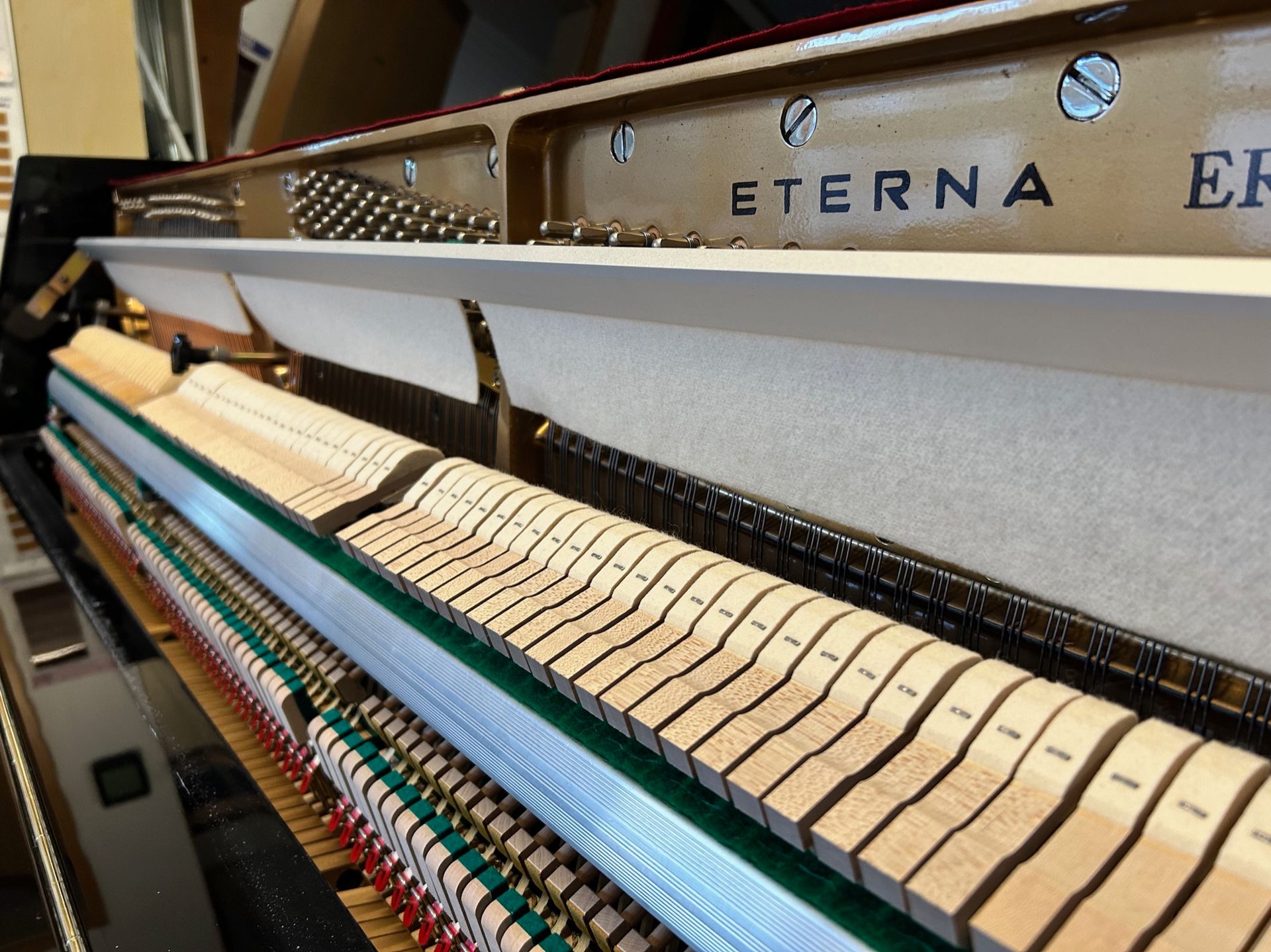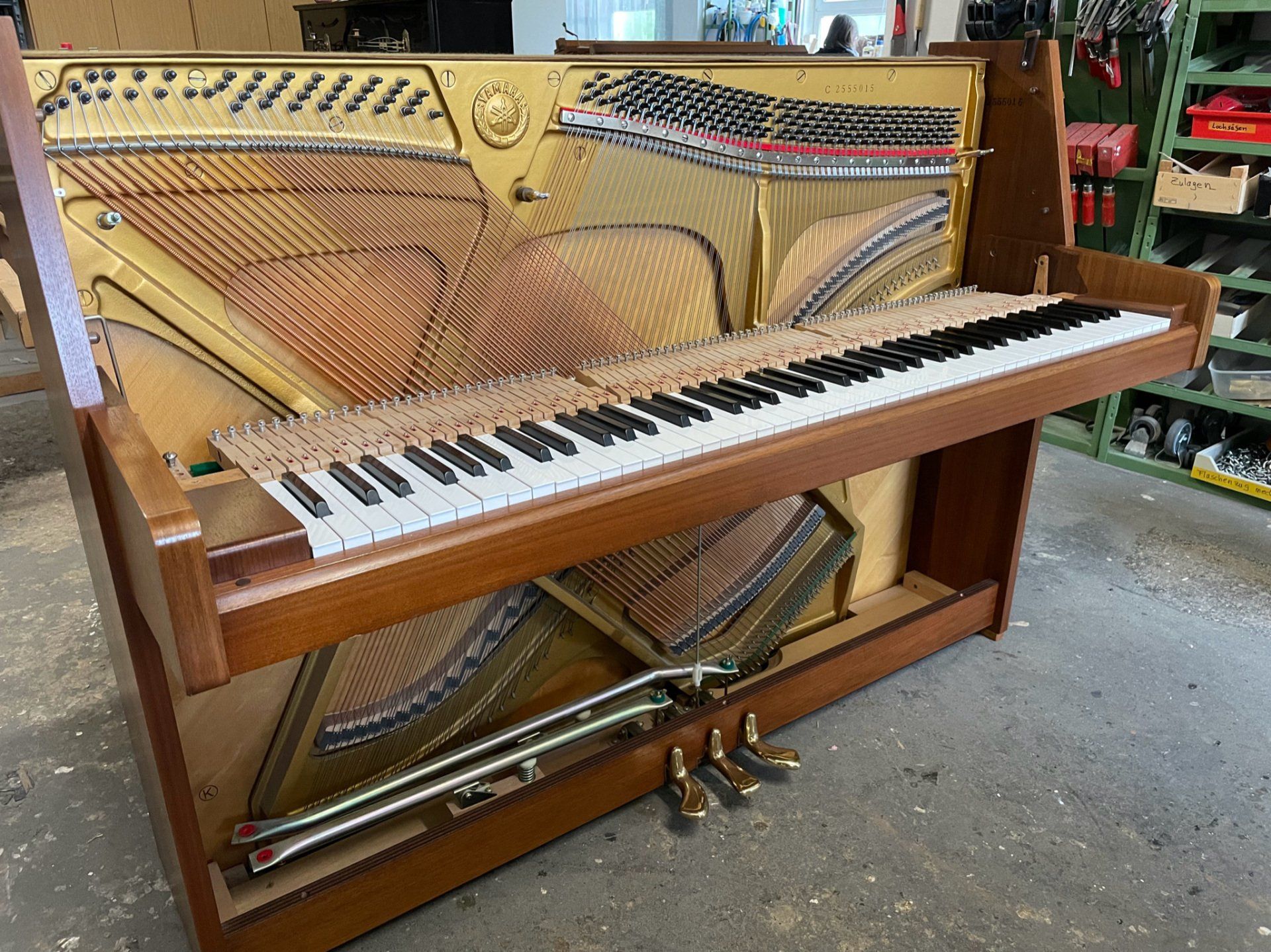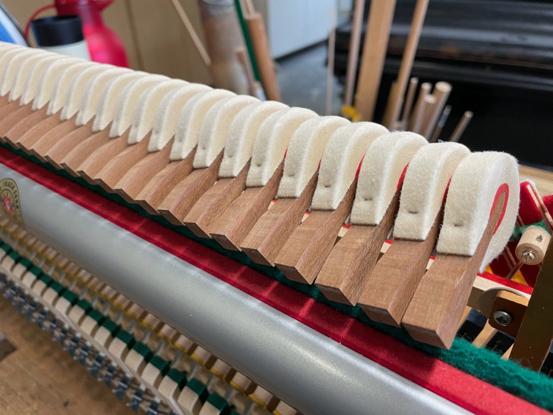 Bevor wir ein Klavier zum Verkauf anbieten, wird es in unserer Klavierbauwerkstatt von unseren erfahrenen Klavierbauern komplett überarbeitet. In unserer Bildergalerie werden diese Arbeiten gezeigt. Die Kosten hierfür ( ca. 1.500,- € ) sind bereits in unseren Verkaufspreisen enthalten.