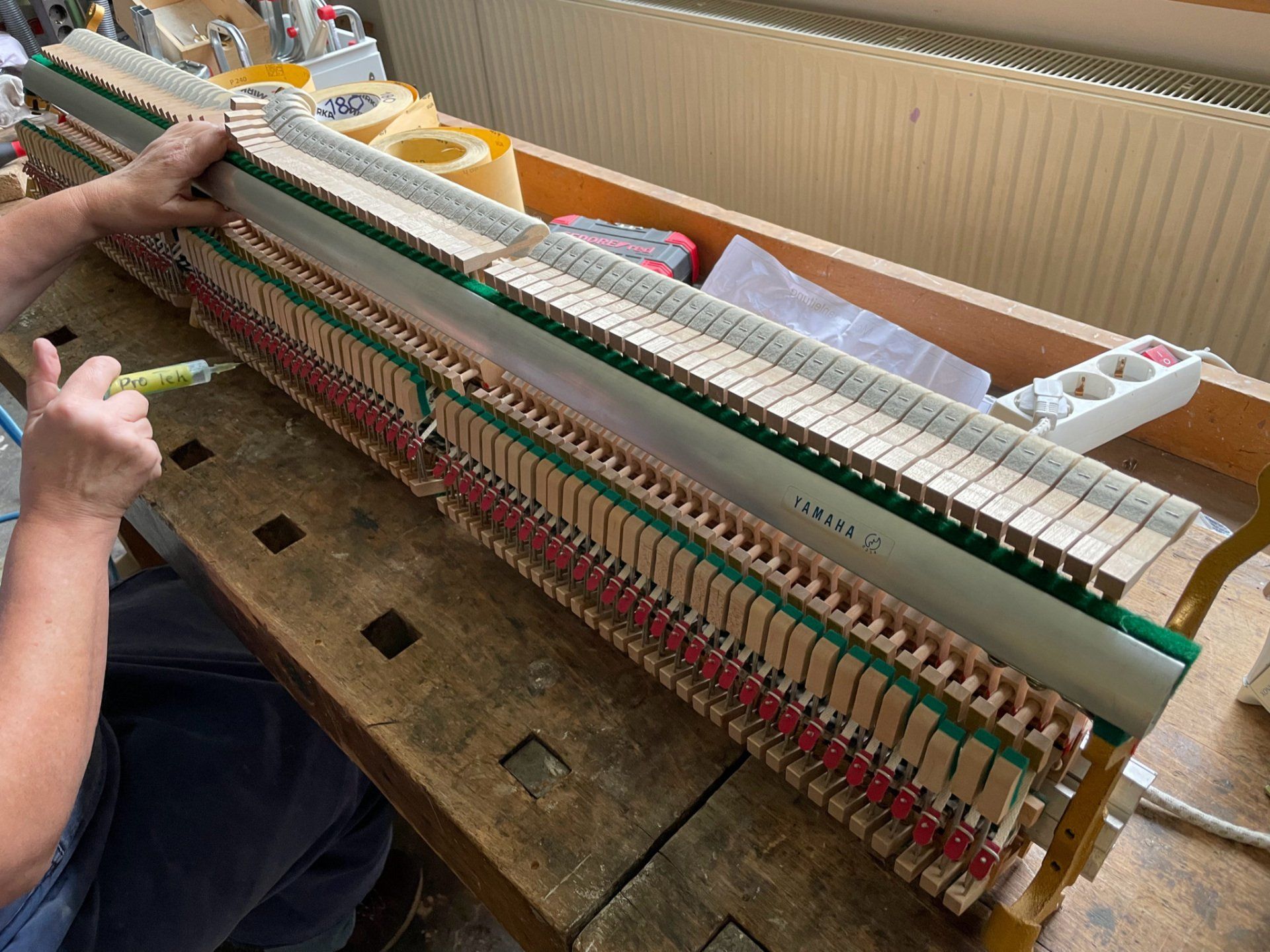 Bevor wir ein Klavier zum Verkauf anbieten, wird es in unserer Klavierbauwerkstatt von unseren erfahrenen Klavierbauern komplett überarbeitet. In unserer Bildergalerie werden diese Arbeiten gezeigt. Die Kosten hierfür