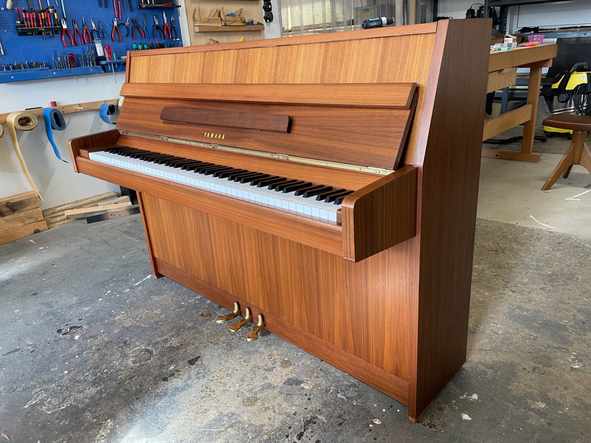 Es wurde in unserer Piano-Manufaktur von unsern Klavierbauern überholt und neu lackiert. Es hat jetzt wieder einen wunderbaren Klang und eine gute Bespielbarkeit.