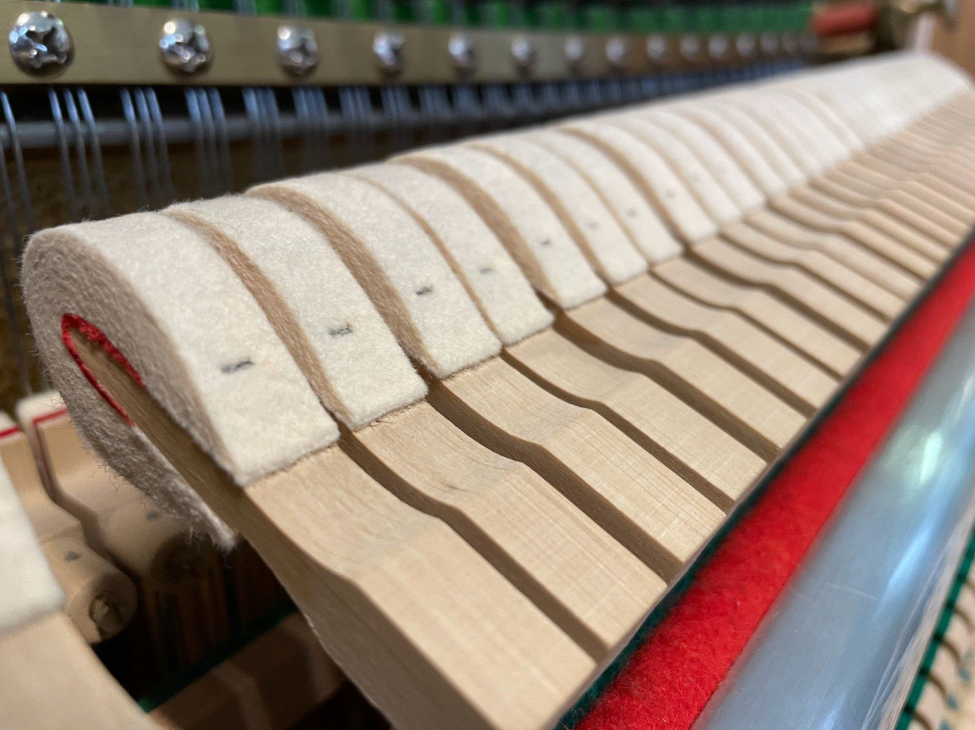 Bevor wir ein Klavier zum Verkauf anbieten, wird es in unserer Klavierbauwerkstatt von unseren erfahrenen Klavierbauern komplett überarbeitet. In unserer Bildergalerie werden diese Arbeiten gezeigt. Die Kosten hierfür ( ca. 1.500,- € ) sind bereits in unseren Verkaufspreisen enthalten.